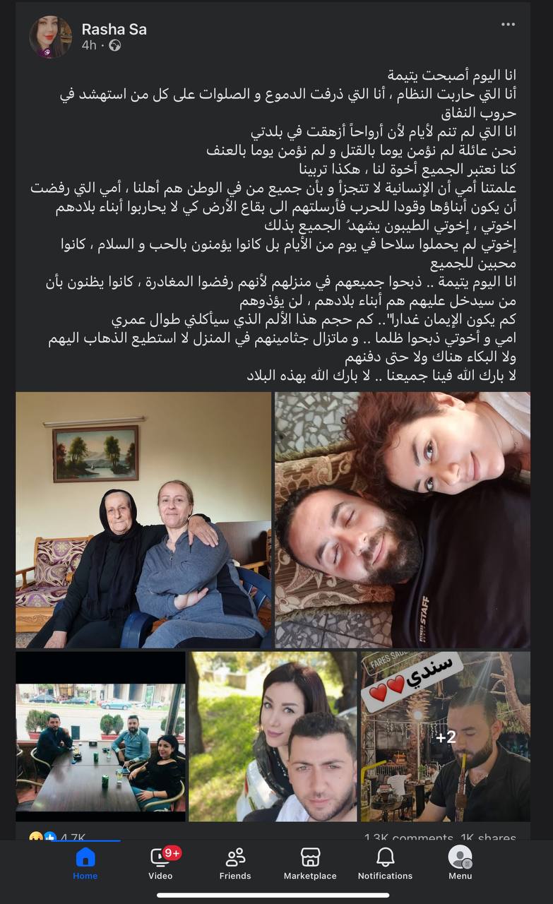 أن العلويين، كغيرهم من السوريين، تعرّضوا خلال سنوات الحرب وما بعدها لمجازر موثقة، وقتل جماعي، وتهجير، وخوف دائم من الاستهداف على أساس الهوية المذهبية، وأن بينهم أطباء، مهندسين، صيادلة، أساتذة، طلابًا، عمالًا وفلاحين، لا علاقة لهم بمراكز القوى أو أجهزة الأمن.