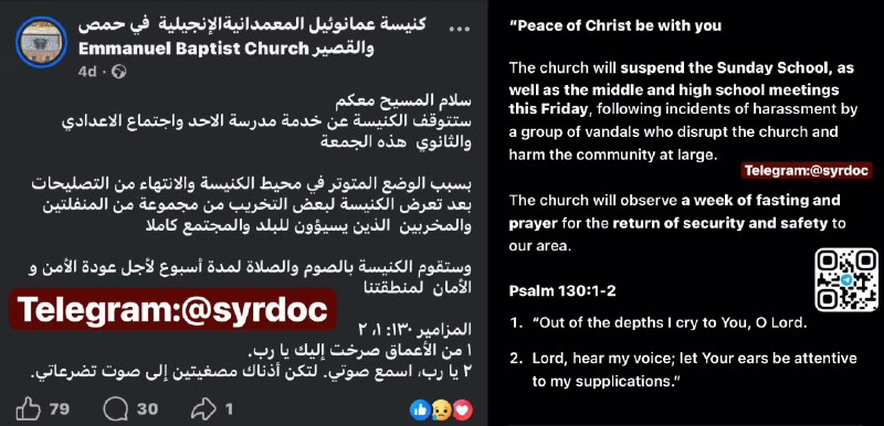 “Brutal Sectarian Assault on Emmanuel Baptist Church in Homs Exposes Systematic Targeting of Syria’s Christian Community”