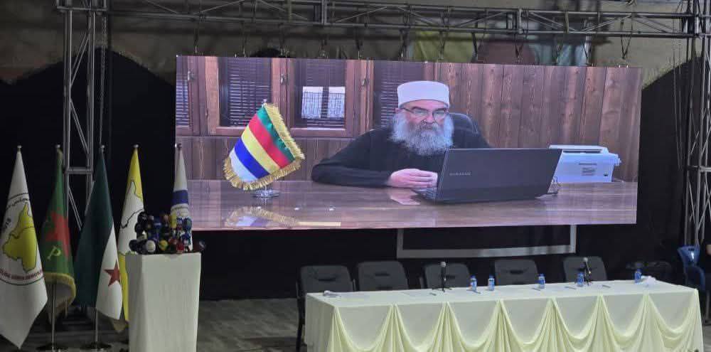 الشيخ حكمت الهجري يشارك عبر كلمة مصورة في مؤتمر تعزيز وحدة الموقف بين مكونات شمال وشرق سوريا في الحسكة: