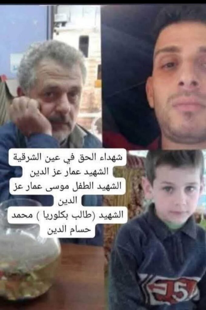 مجموعة مسلحة تابعة للميليشيات الجولاني الداعشية الإرهابية قامت باغتيال عائلة علوية كاملة أثناء عملها في أرضها المزروعة بالزيتون في بلدة عين الشرقية مقابل اللواء 107.