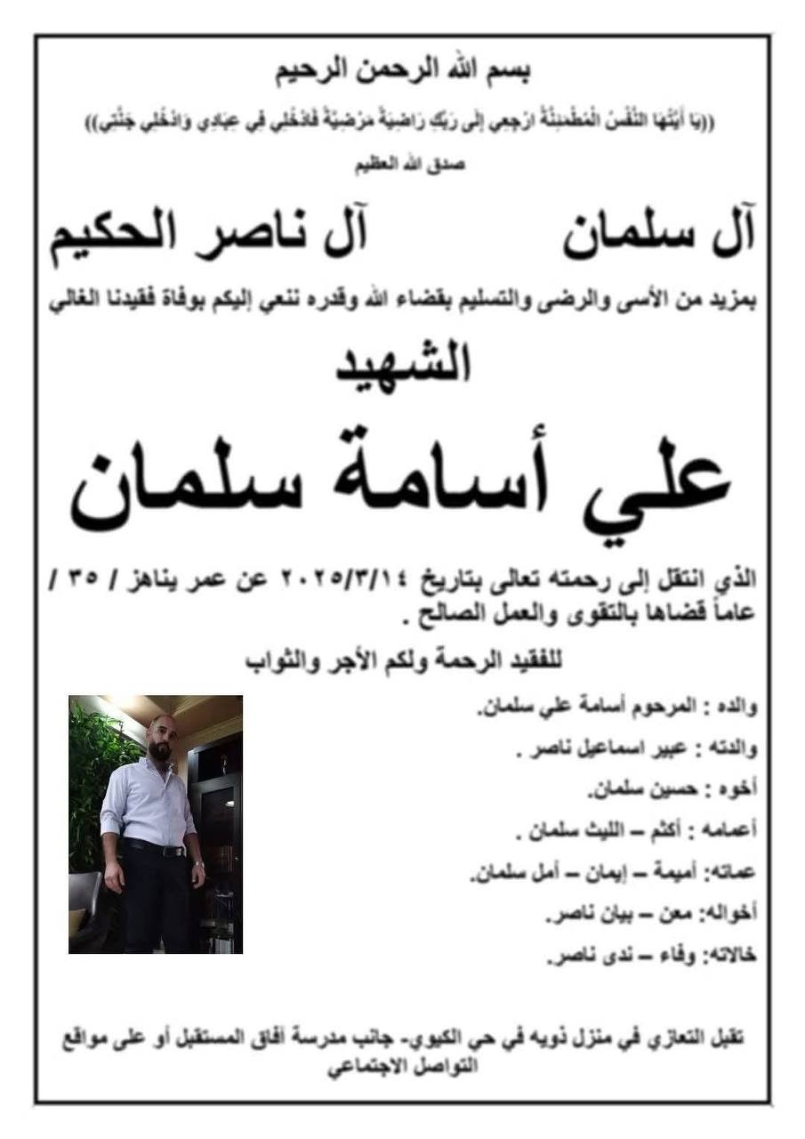 Ali Osama Salman, 35 years old, was killed after being abducted while traveling from the village of Al-Shrashir to #Jableh by militants of the terrorist organization #HTS Hay’at Tahrir al-Sham.