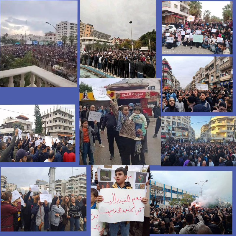 خرج آلاف العلويين في مدن وقرى وسط وغرب سوريا يوم أمس 25 تشرين الثاني/نوفمبر، في مظاهرات شملت 42 موقعاً، حيث طالبوا بتطبيق النظام الفيدرالي واللامركزية السياسية، وإنهاء عمليات القتل والخطف والاعتقال القسري، والإفراج عن المعتقلين، كما طالبوا بتمثيل الشيخ غزال غزال رئيس المجلس العلوي لهم.