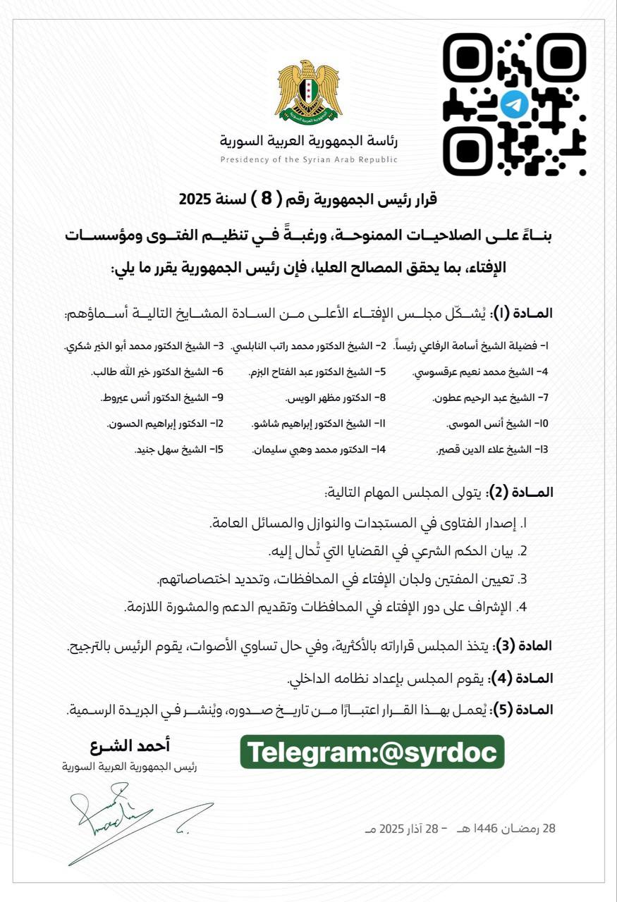 ⇛ The appointment of Osama Al-Rifai as Syria’s Grand Mufti has ignited controversy, given his track record of incendiary rhetoric and religious decrees that justified attacks on Kurdish areas and the expropriation of their property during Turkey’s 2018 occupation of Afrin. Documented footage further exposes his sectarian incitement, particularly against Shia communities, underscoring the persistence of exclusionary and divisive policies that threaten Syria’s diverse social fabric.