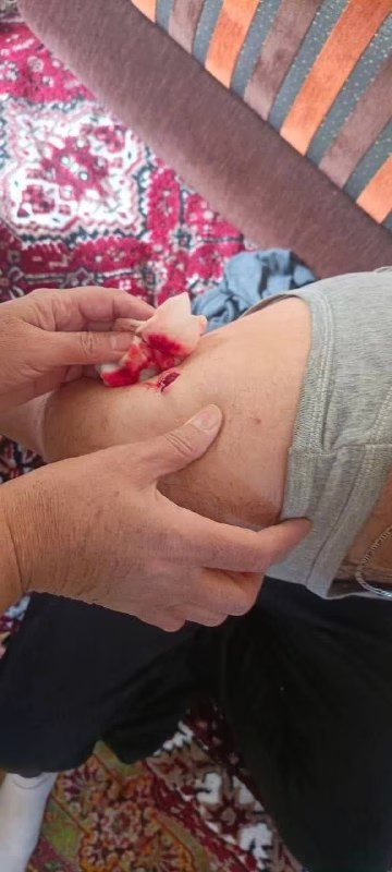 • During the attack, the father, who suffers from diabetes, fell after being struck by stones. His son threw himself over his father in an effort to shield him from the blows. The assault resulted in the young man sustaining multiple stab wounds and bruises, one reaching the bone, in addition to a severe blow to the head. The father suffered a stab wound to the thigh and a fracture in the foot.