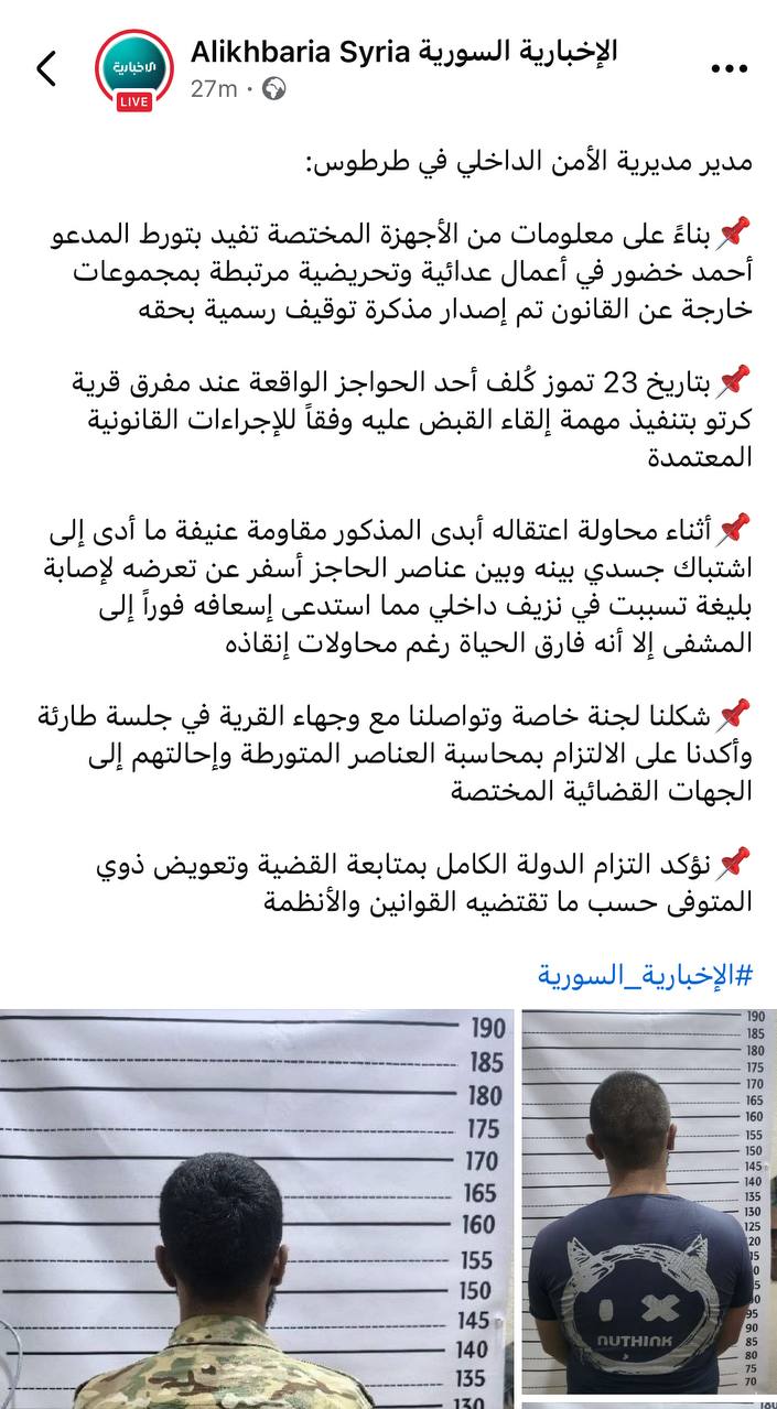 هذه القصة عن أحمد خضور، انتشرت منذ يوم أمس على صفحات أهل بانياس البلد ومؤثريهم (بالمشرمحي جماعة أنس عيروص)، والآن الجهات “الرسمية” تتبناها.