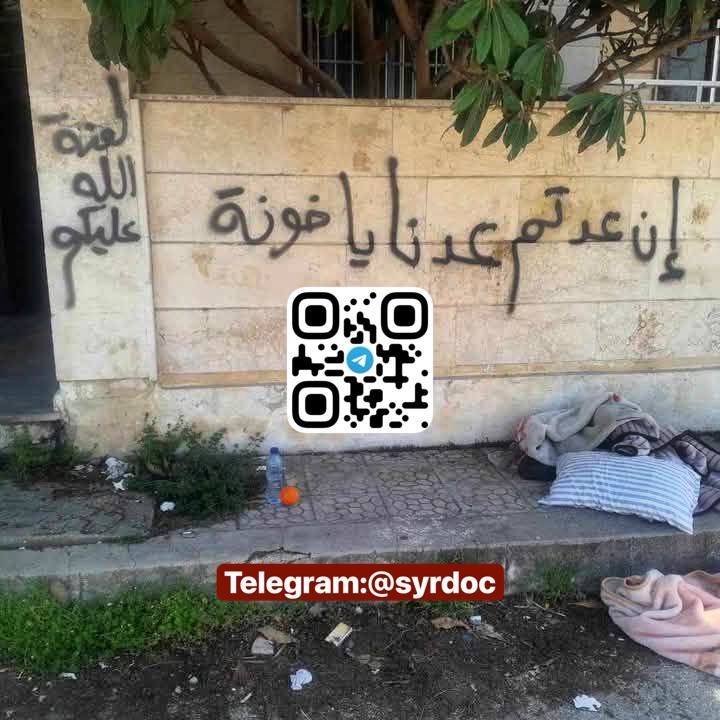 بانياس رسائل تهديد على الجدران بعد مجزرة عصابات الجولاني الإرهابية