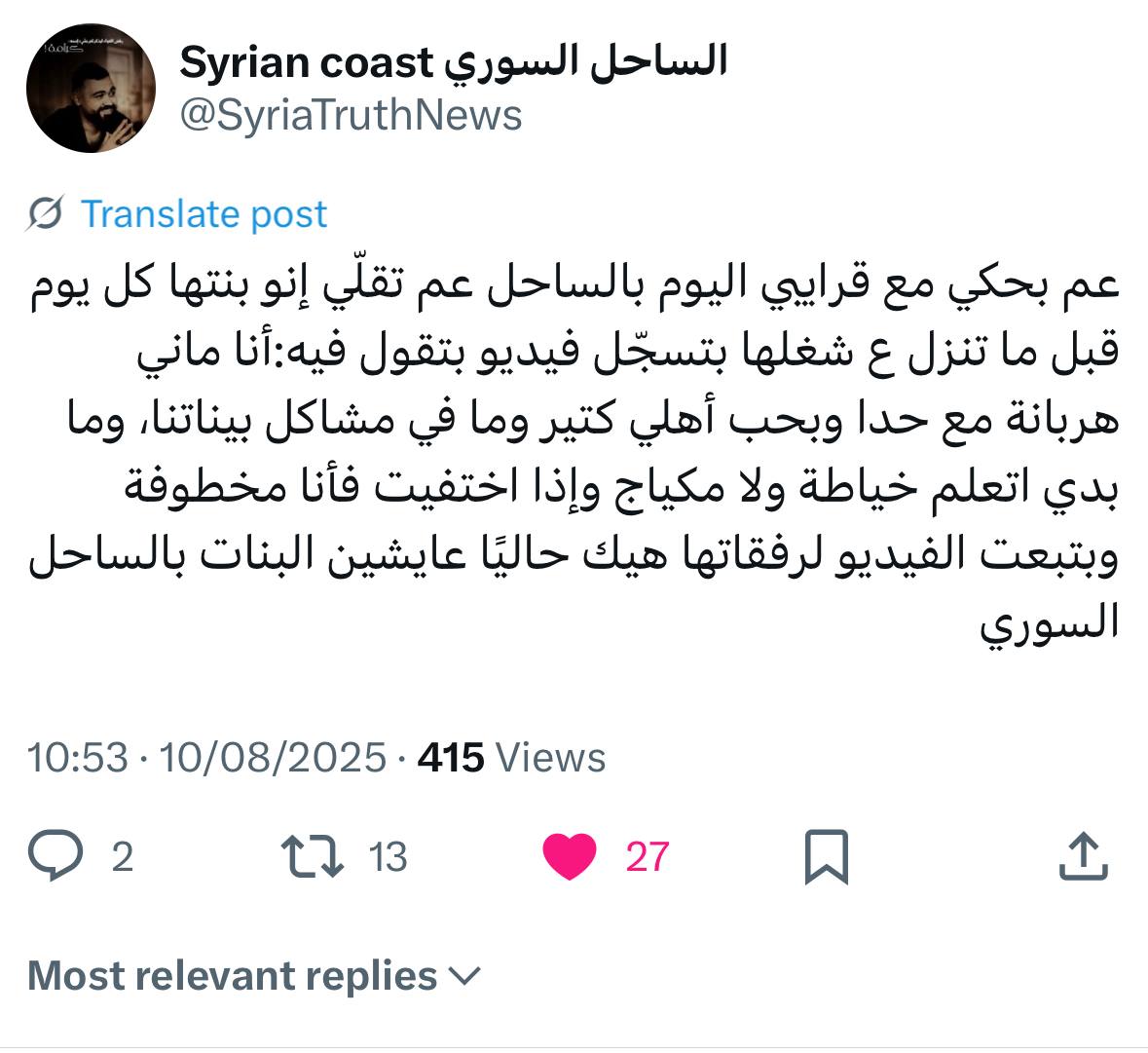 دعوة لتسجيل فيديو للفتيات العلويات كإجراء وقائي