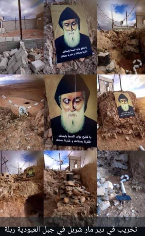 كما تعرض دير مار شربل الماروني، الواقع في جبل العبودية قرب قرية ربلة، لعملية تخريب وتدمير. (مرفق صورة للحادثة).