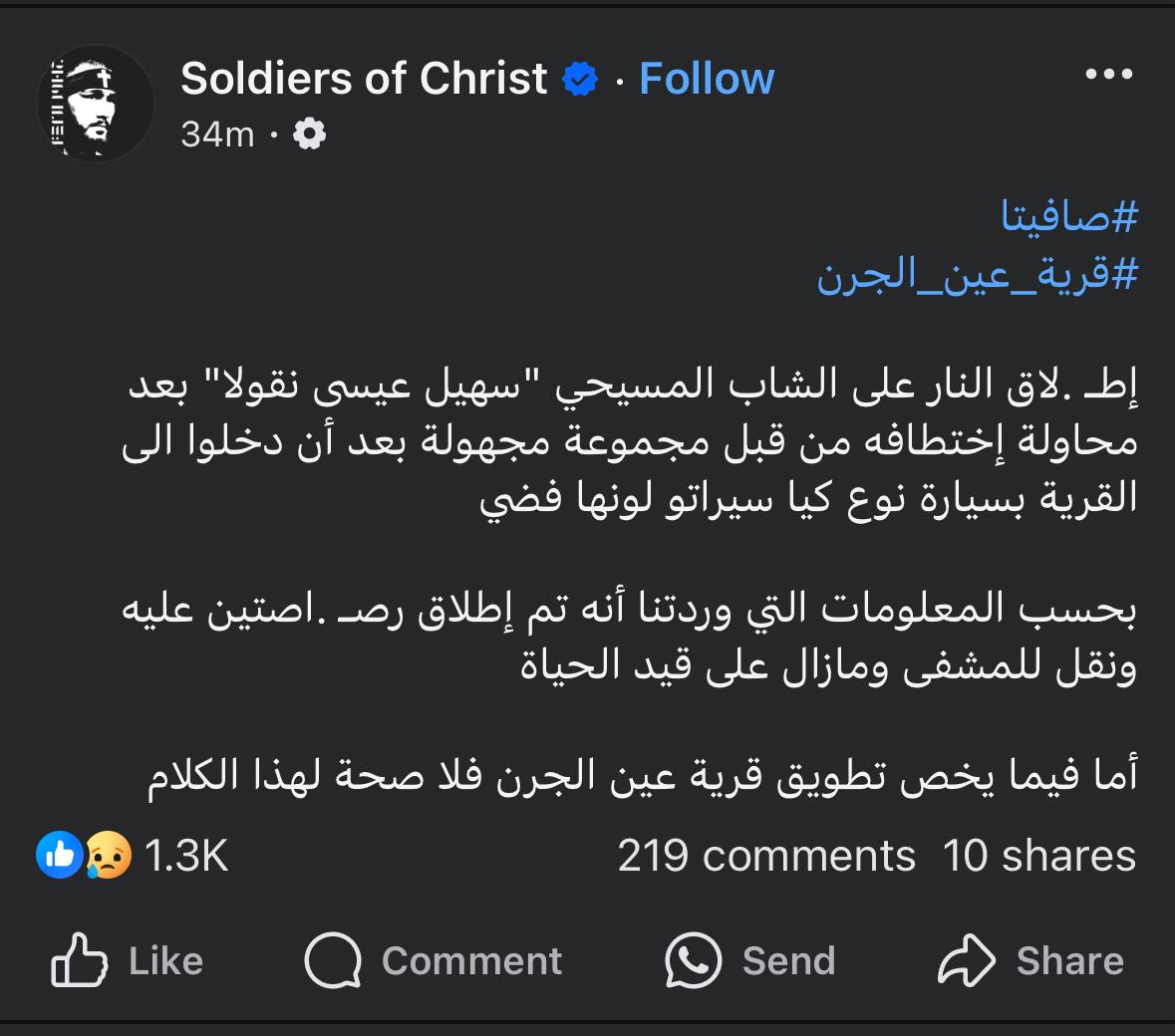 -عدة صفحات تناقلت أخبار عن اقتحامات أو تطويق للقرية وهو مانفته صفحة القرية وإعلام الجولاني، ولكن ماهو حقيقي أنه هناك رجل مسيحي أطلق النار عليه في القرية، وهو لم يطلق النار على نفسه !!