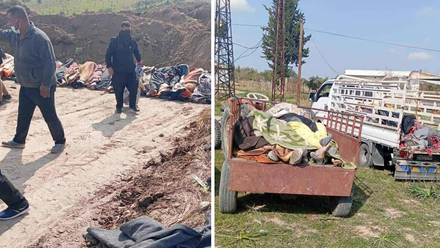 لم يُسمح للأرامل بنقل جثامين أزواجهن وأبنائهن أيام، ث الجثث في شاحنات ونُقلت للدفن عند أطراف القرية، وتم حفر القبور بالجرافات والآليات الثقيلة، وفقًا لأم خضر.