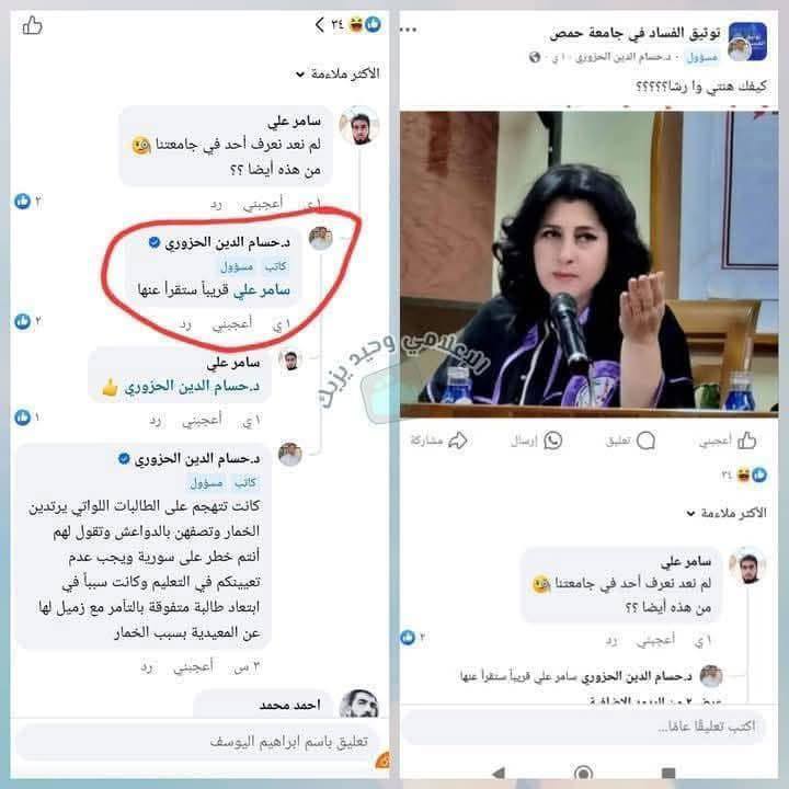 الدكتورة تعمل في قسم اللغة العربية في جامعة #حمص ، ويذكر أن قبل اختطافها بأيام ظهر منشور على الفيسبوك يحرض عليها وكتب تعليق من قبل شخص يطلق على نفسه “د. حسام الدين الحزوري” يتنبأ بقرب انتشار أخبار عنها، وذلك دليل كافي على أن الفكر الجهادي لايقتصر على الجهلة فقط بل وقد يشمل أكثر فئات المجتمع علماً وثقافة.