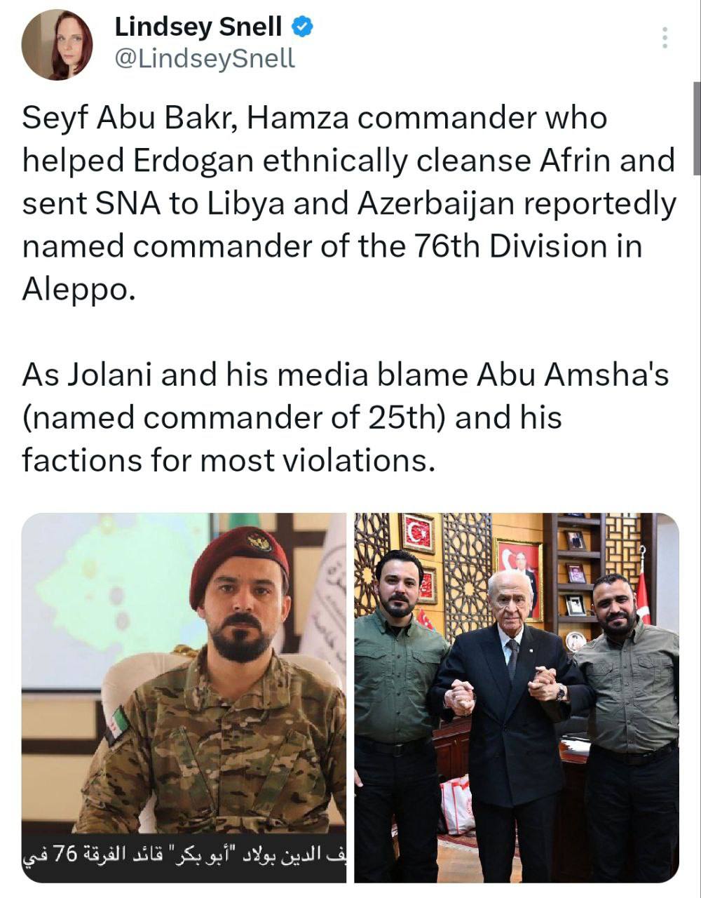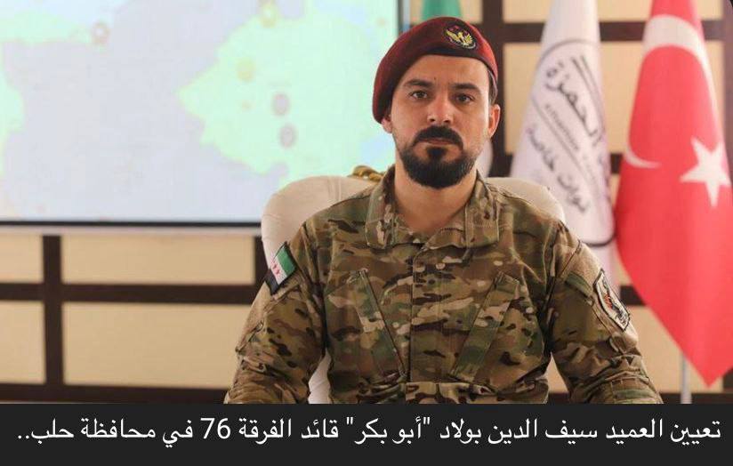 سيف أبو بكر، عضو سابق في تنظيم داعش وقائد لواء الحمزة، تم تعيينه قائداً للفرقة 76 في حلب.