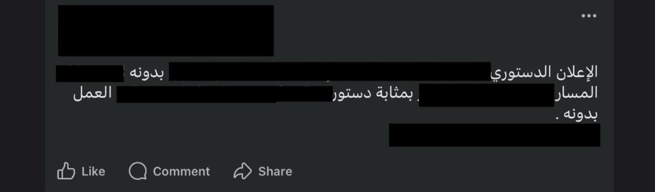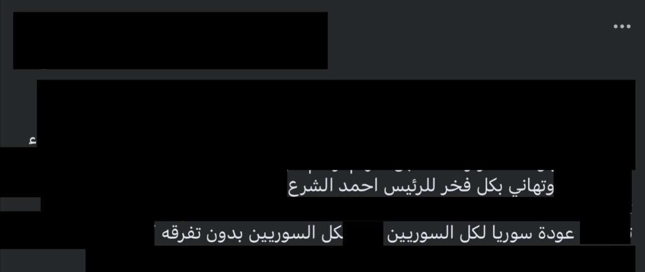 We were able to find the personal Facebook page of Mr. Hussein al-Sharaa, the father of Ahmad al-Sharaa, better known as al-Julani. In one of his posts, he raised the question of why there is no constitutional declaration and how things can’t work without it.