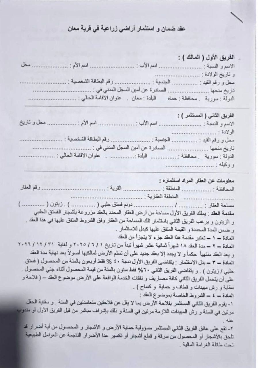 محافظة حماة: تفاصيل جديدة كشفت للعلن عن نشاط شركة “اكتفاء للاستثمار الزراعي”، والتي تعمل بتنسيق مباشر مع المكتب الاقتصادي في محافظة حماة، في إطار خطة ممنهجة تستهدف أراضي العلويين فقط الصالحة للزراعة في ريف المحافظة الشرقي.