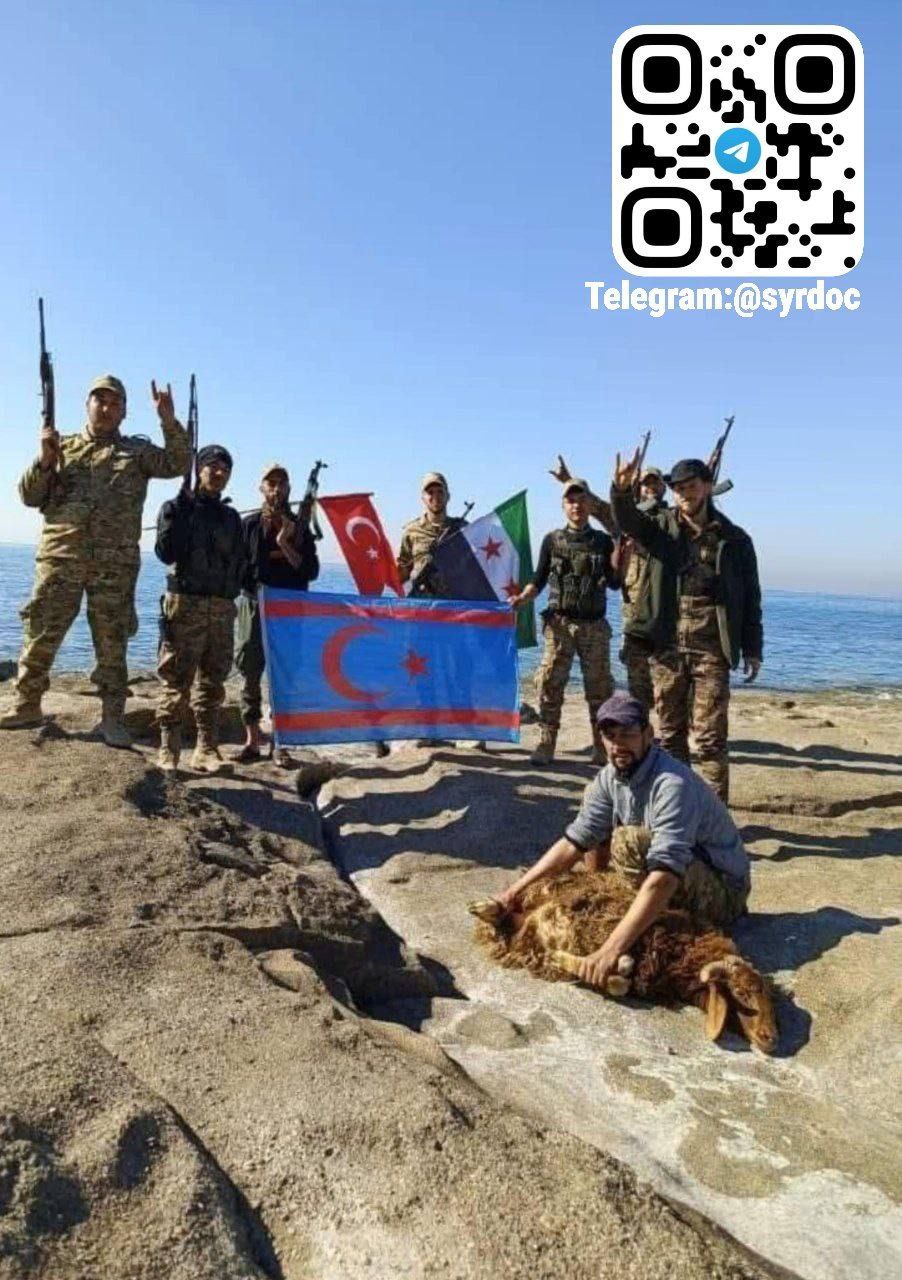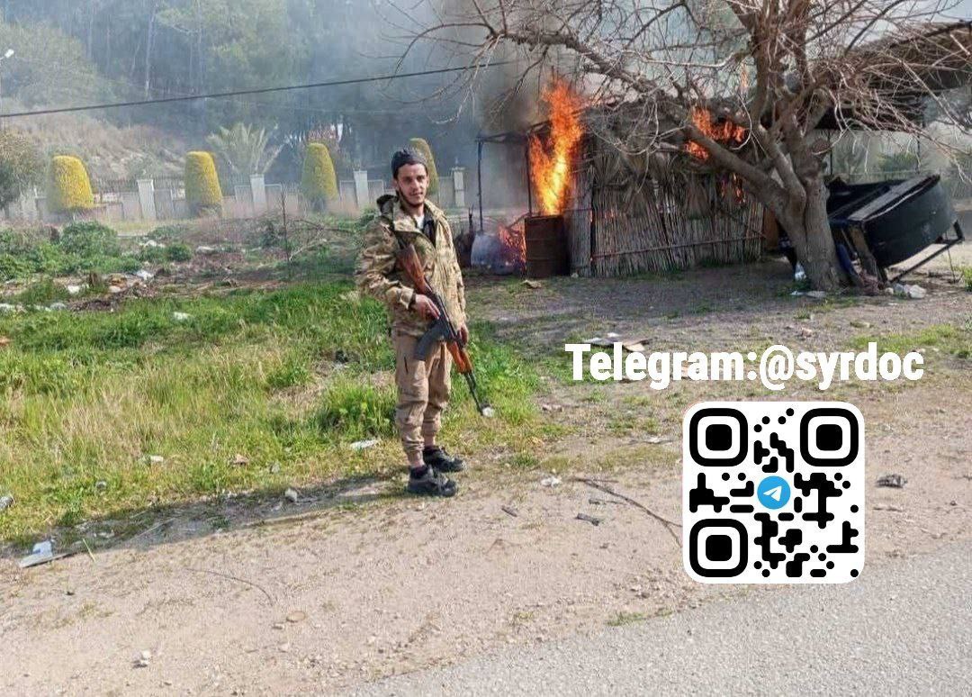 Hay'at Tahrir al-Sham members document their presence on the coast and their act of burning houses on social media.