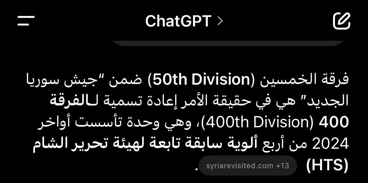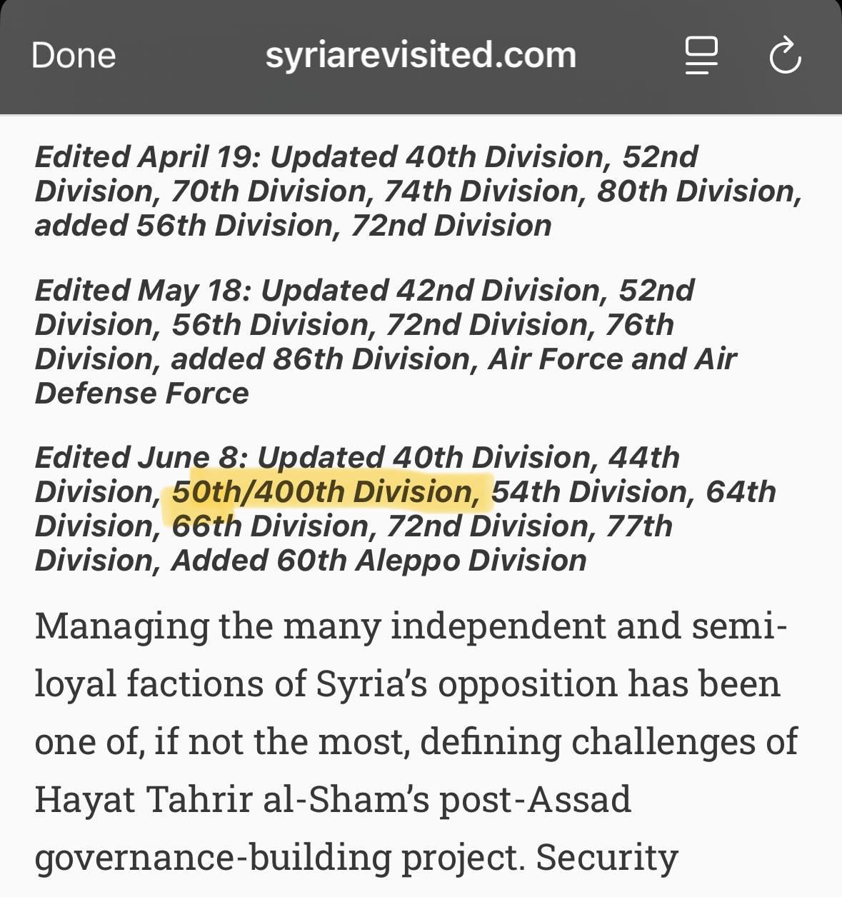بعد بحث عن الفرقة 50 في الانترنت تبين أنها إعادة تسمية للفرقة 400 من فصائل تنظيم عصابات الجولاني الإرهابية.