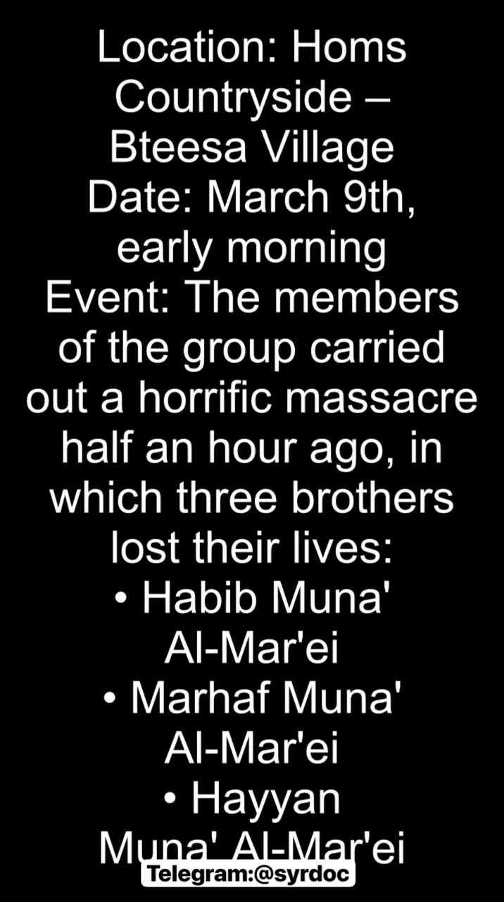 Incident: In a brutal act of sectarian violence, HTS militants executed three brothers just moments ago: