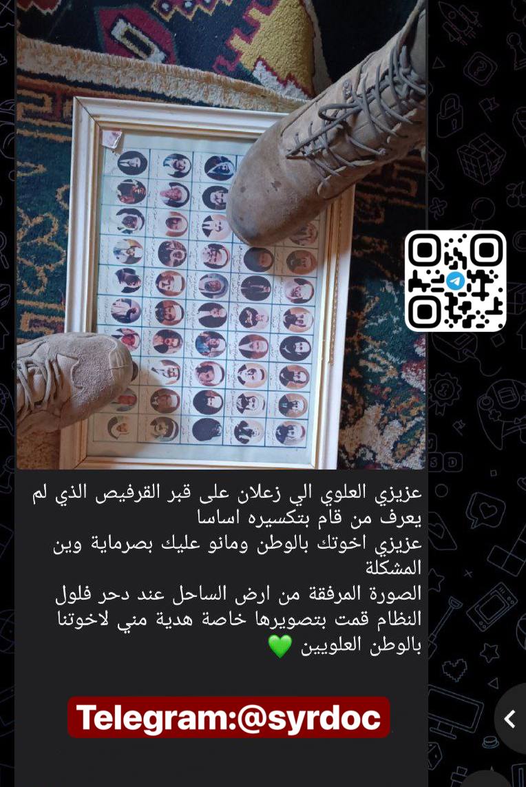 The attached image is from the coastal region, taken when we crushed the remnants of the regime. I personally took this picture as a special gift for our Alawite brothers in the homeland."