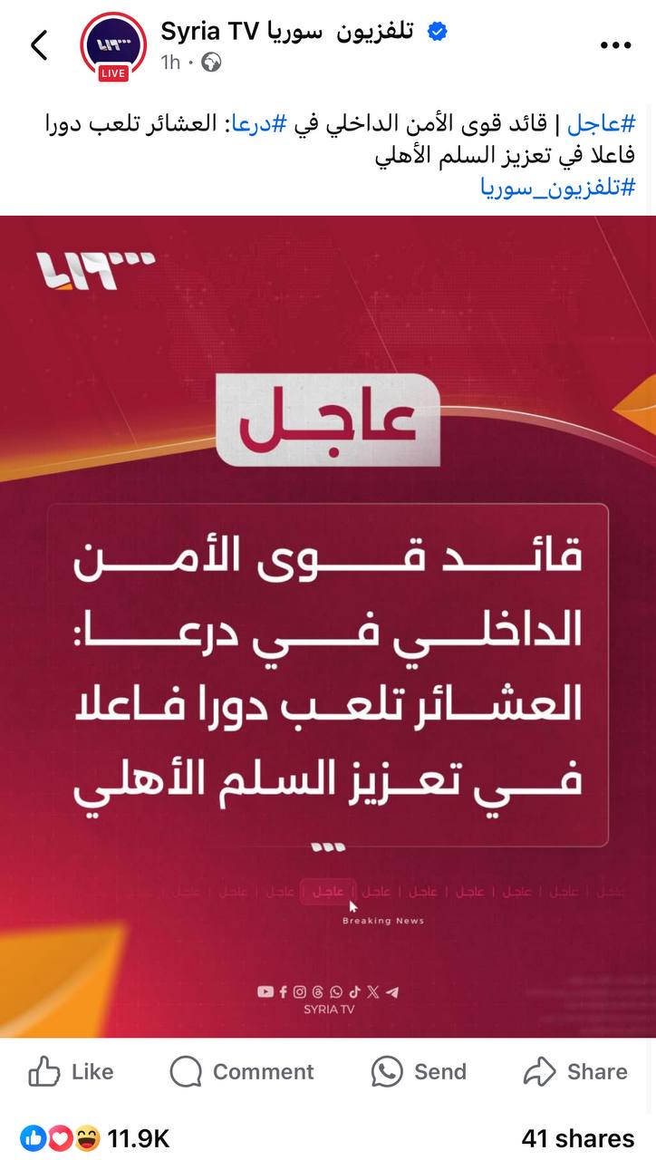 قائد بالأمن الداخلي العشائر تعزز السلم في درعا