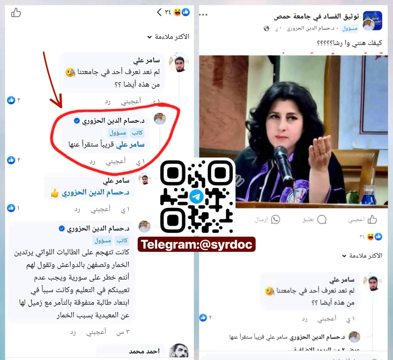 Notably, a post mocking her was published yesterday in the group “Documenting Corruption at Al-Baath University” by Dr. Hossam Al-Din Al-Hazrawi, who responded to a comment with, “Soon, you will hear about her.” She was abducted the next morning.