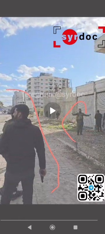 ١- يظهر الشخص في الصورة يحمل سلاحاً ويقف بجانب عناصر عصابات الجولاني الإرهابية، مما يثبت تورطه في قمع المتظاهرين وأنه لا يمت بصلة للمتظاهرين السلميين.