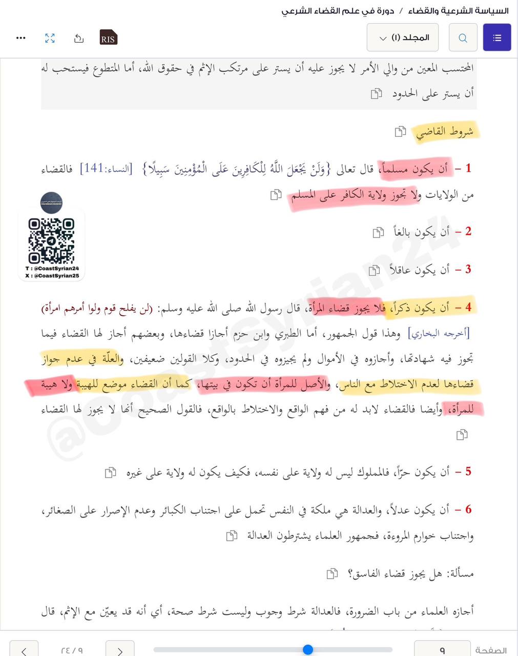 ❗️On the occasion of Muzhir Al-Weis reopening his account on ❌after deleting his sectarian and extremist posts, I will today publish excerpts from his Salafi extremist books. I will upload a PDF copy of his booklet “Course in the Science of Sharia Judiciary” to my Telegram channel due to its lesser risk, but I will refrain from posting his other books in full so as not to contribute to spreading this extremist Salafi ideology among members of the Sunni sect. Unlike the books of Abdul Rahim Atoun and Anas Ayrout, Al-Weis’s books are far more insidious and cunning.