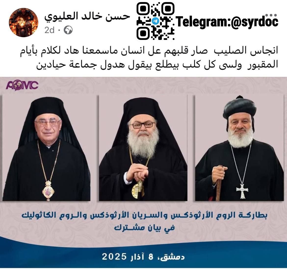 خطاب كراهية وتحريض على القتل.. شخص يشتم رجال الدين المسيحيين ويفتخر بمنشوراته التي تمجد قتل أطفال الطائفة العلوية مقابل المال، ويواصل التحريض على إبادة العلويين
