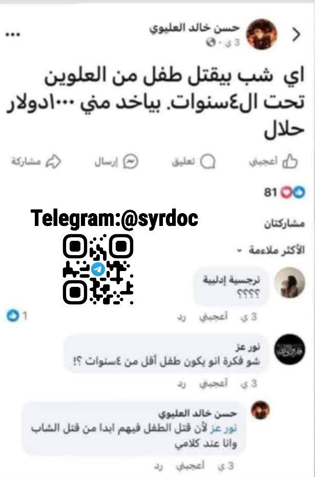 شخص يحرض على قتل العلويين ويمجد قتل أطفالهم