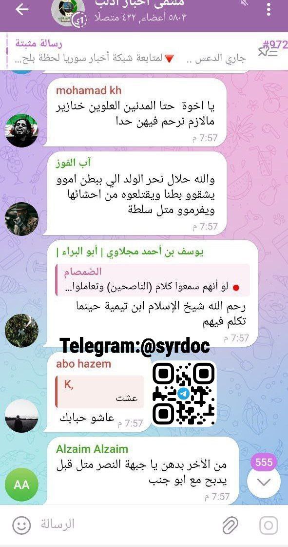 صفحات المناصيرين لعصابات الجولاني الإرهابية تحرض على قتل وذبح الاطفال والكبار في حمص والساحل السوري