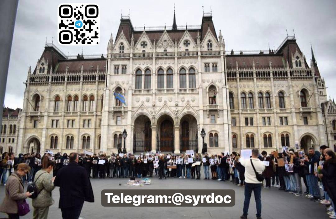 احتشد المتظاهرون أمام البرلمان في بودابست للتنديد بالمجازر على الساحل السوري، مطالبين بالعدالة للضحايا.