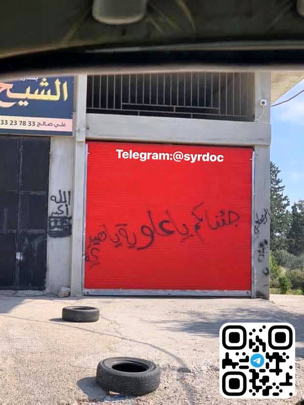 ظهرت عبارات طائفية خطيرة على واجهات المحال التجارية في طرطوس، تتضمن تهديدات مباشرة ضد أبناء الطائفة العلوية، ومنها: