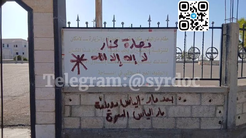 كتابات طائفية تهدد كنيسة مار إلياس في صيدنايا