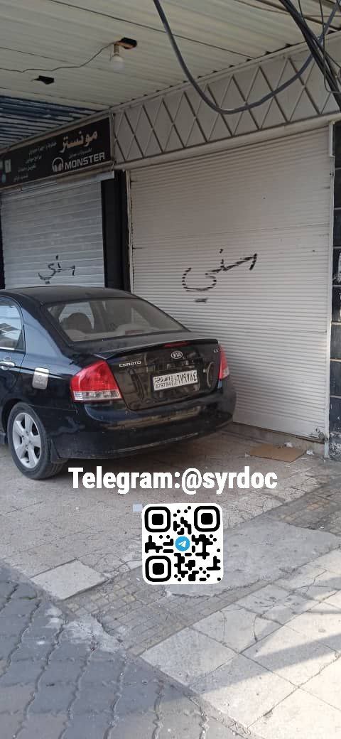 In an entirely sectarian act, the shop owner's religion is written so that members of Hayat Tahrir al-Sham and the public security forces can determine whether they will steal from or damage the shop.