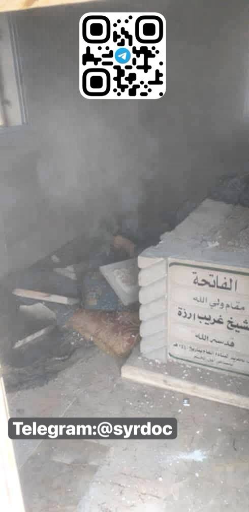 Under the command of Sheikh Emir Abu Bakr Al-Khattabi, General Security forces torched and demolished the Sheikh Gharib shrine in Arza after forcibly displacing its residents. Homes were looted, and graves were exhumed—marking a deliberate assault on history and identity.