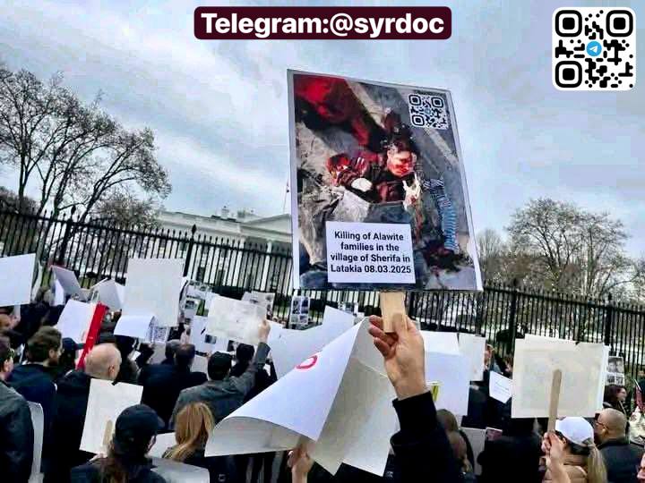 Syrian activists gathered in front of the White House, holding images of the victims and signs calling for an immediate halt to the systematic killings on the Syrian coast. The protest featured a QR code for the channel, delivering a clear and compelling message: “No matter how much the media suppresses the truth, we will always find countless ways to make it known."