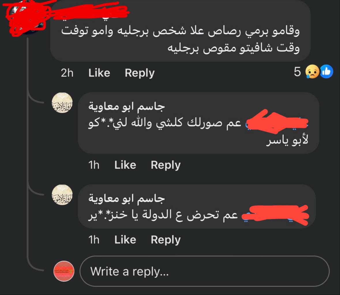 هذا الإرهابي جاسم المصري صاحب الفضيحة اللاأخلاقية يقوم من حسابه الجديد بتهديد أحد الأشخاص بقتل أحد أقربائه في القرية وتصوير كل شيء، بعد أن تحدث ذلك الشاب أن سيدة توفيت نتيجة الصدمة بعد اعتقال ولديها في باروحة