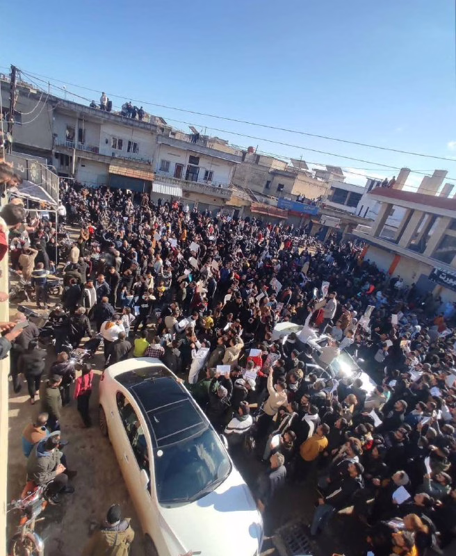 🚨 سلحب: مظاهرة حاشدة للعلويين في مدينة #سلحب بريف محافظة حماة الغربي، والمتظاهرون يرددون “ما مننذل وما منهان”