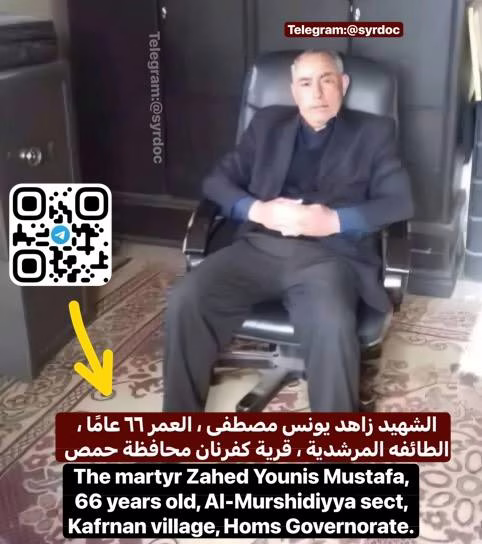 استُشهد المدني زاهد يونس مصطفى بعد أن استهدفه مسلّحون من عناصر عصابات الجولاني الإرهابية أثناء عودته من مدينة حمص إلى قريته.