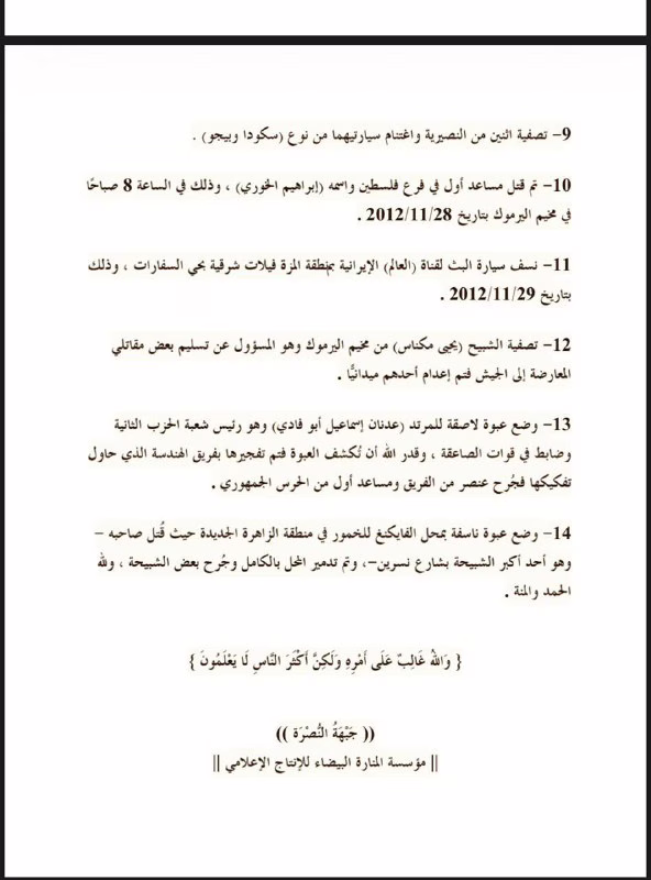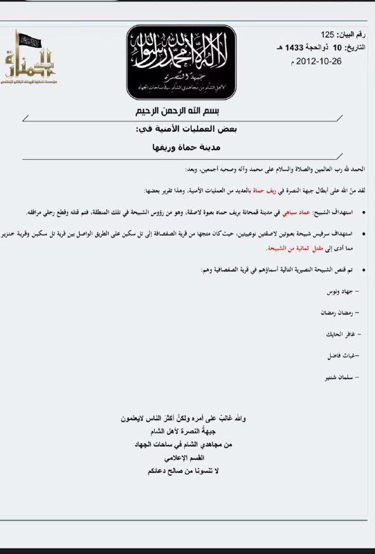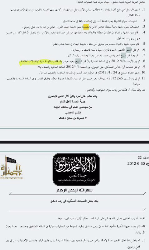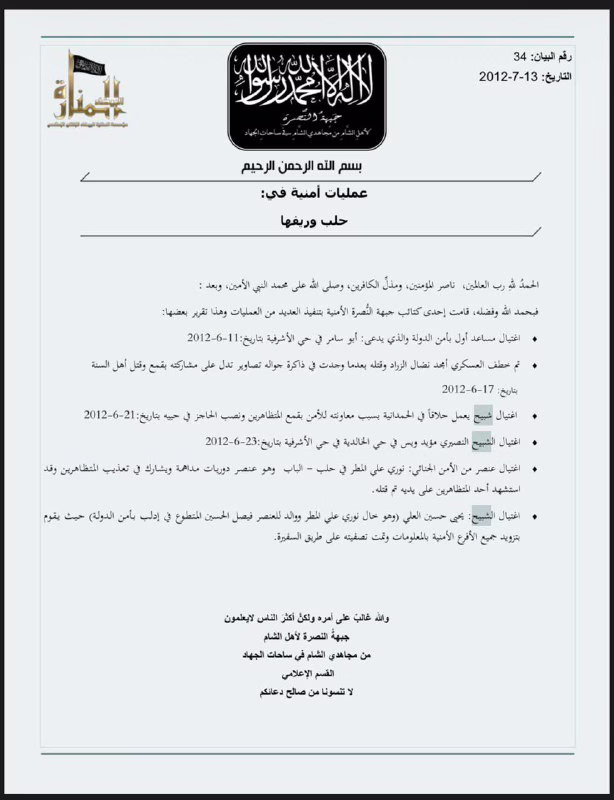 هنا عينة بسيطة من هذه البيانات الصادرة رسمياً ومباشرة عن التنظيم الإرهابي الذي يتزعمه أبو محمد الجولاني.