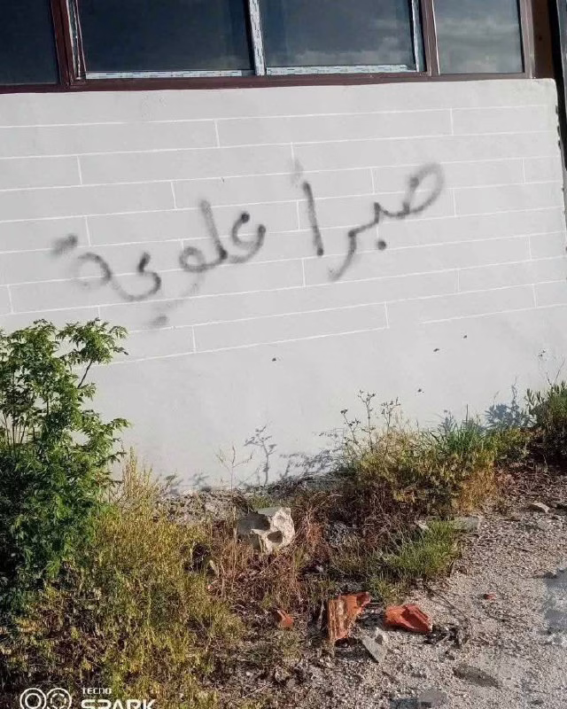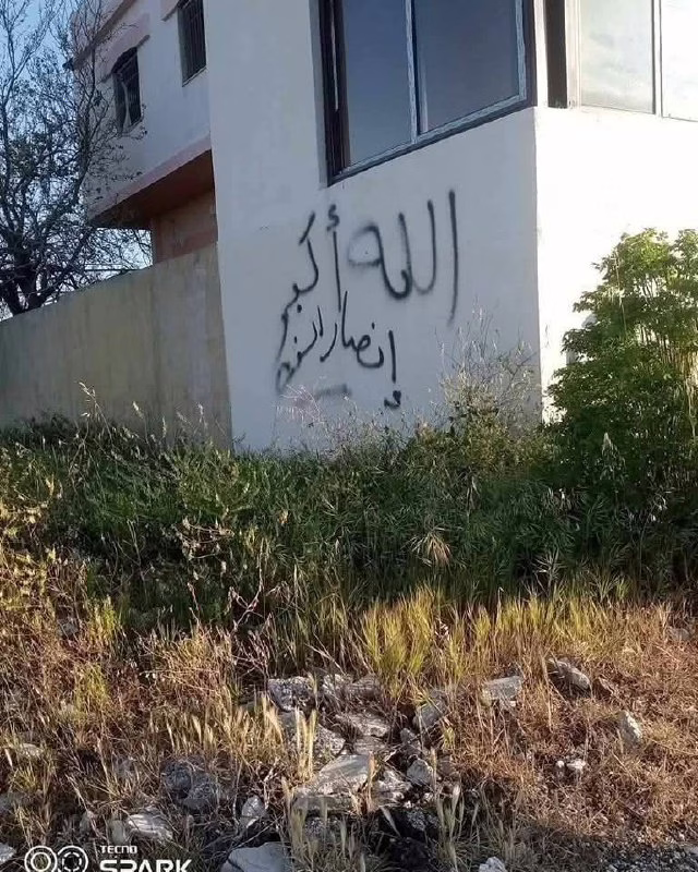 Al-Khuraiba Village in the Countryside of #Baniyas: Sectarian threat messages were written on walls in Al-Khuraiba village, located near Al-Marqab village. The messages read: “Patience, Alawites” and “Allahu Akbar, Ansar al-Sunna.”