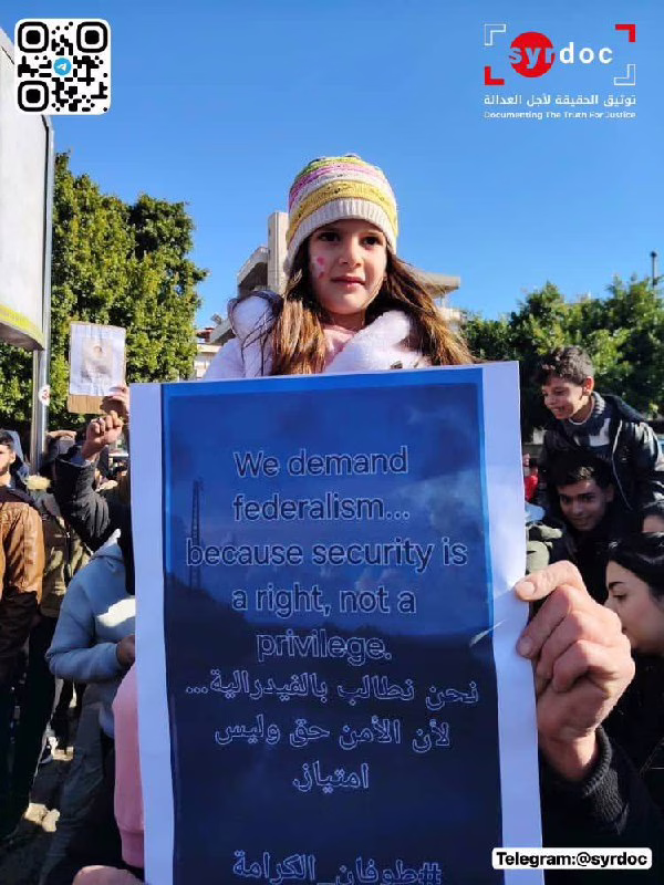 توثّق المشاهد خروج مدنيين من مختلف الفئات العمرية في تظاهرات سلمية متزامنة في مناطق متفرقة من غرب ووسط سوريا للتعبير عن مطالب سياسية ومدنية واضحة، يتمثل أبرزها في الدعوة إلى نظام حكم فيدرالي وتطبيق اللامركزية السياسية لمناطقهم، وذلك عبر رفع لافتات وهتافات تعكس هذه المطالب.